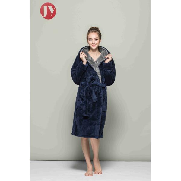 Fluffy Polyester Sherpa Fleece Hooded Robe , Unisex Full Length Warm Plush Bathrobe With Grey Kimono Collar Images